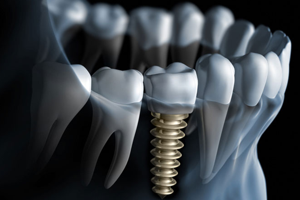 An implant is a manufactured replacement for the root of a tooth. Usually made of titanium and looking a little like a screw, the implant is surgically positioned in the jaw bone. A crown is then attached to the top of the implant to fill the gap of the missing tooth.